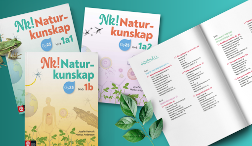 Gör som många andra, upptäck vår nya serie Nk! Naturkunskap. Det är ett nytt läromedel som förklarar och illustrerar naturvetenskapen på ett lättfattligt sätt, men vågar ändå gå på djupet. Läromedlet är skrivet helt för Gy25.
