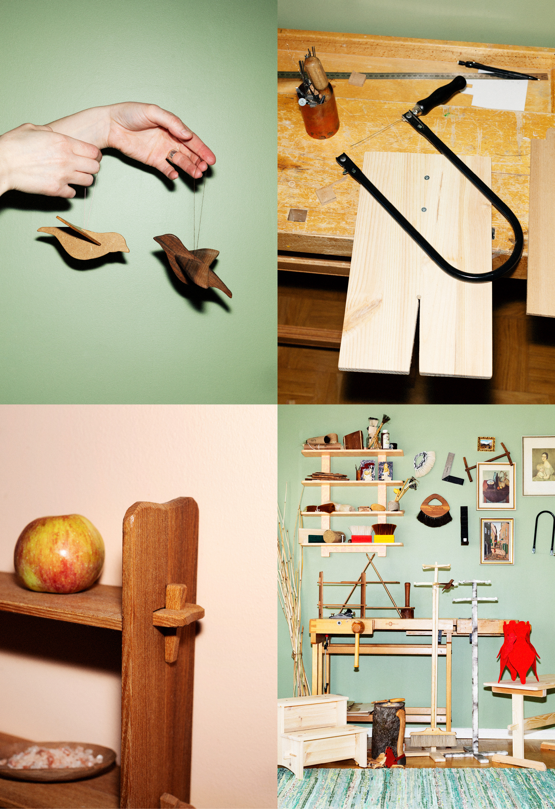I Trä finns ett 20-tal tydliga beskrivningar på små och stora träprojekt som borstar, vackra lövsågsarbeten, täljda köksredskap och möbler som hatthängare, hyllor och bord – som varken kräver avancerade maskiner eller expertkunskap.