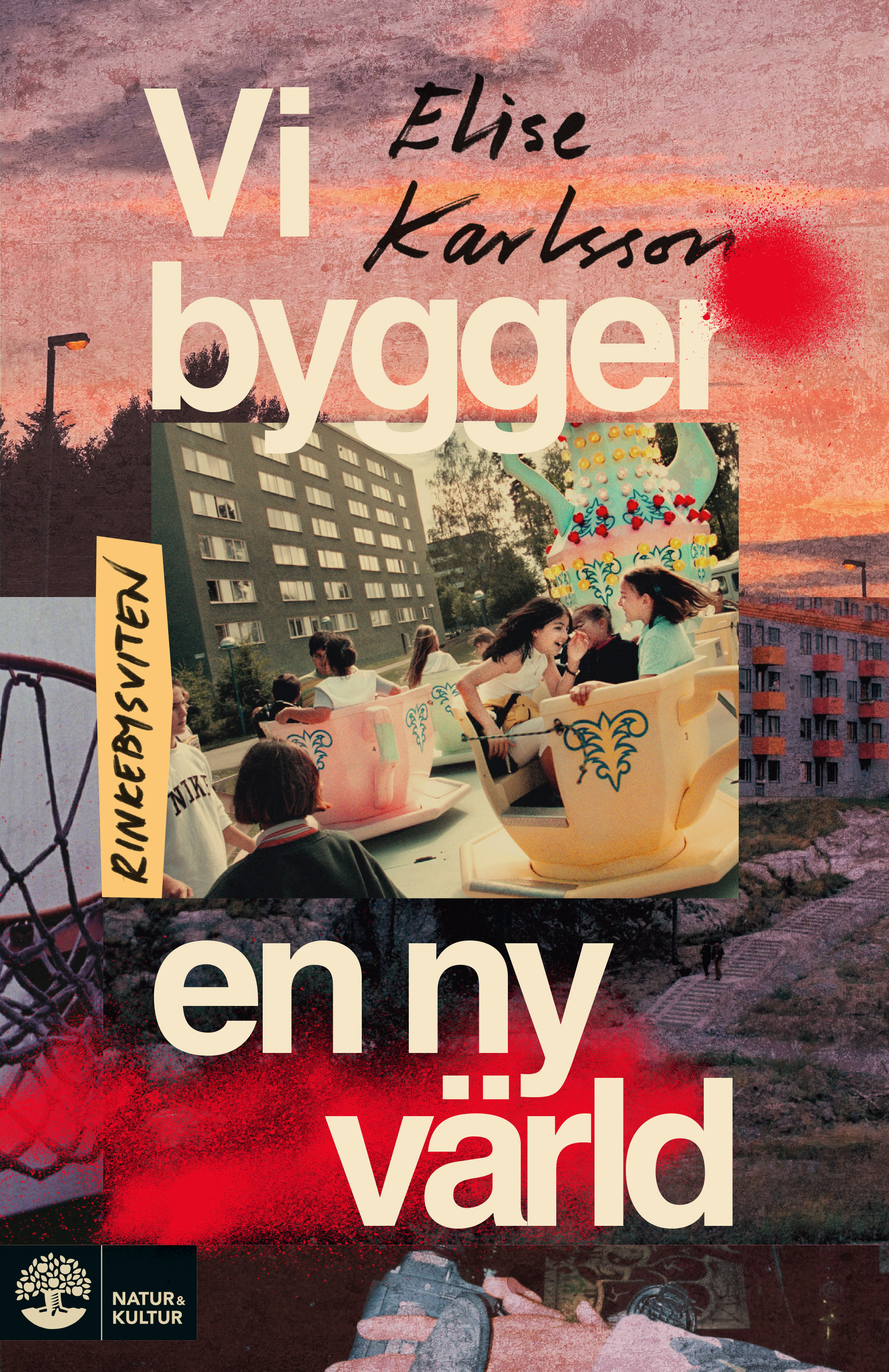 Vi bygger en ny värld är den tredje delen i Elise Karlssons prisbelönta Rinkebysvit. Nittiotalet gör entré med fotbollsdrömmar, ökad arbetslöshet och tonårsmagi. Lasermannen sprider skräck samtidigt som Johnny, Kai, Esme och Rashid brottas med relationer som skaver och går i kras och drömmar om något större.